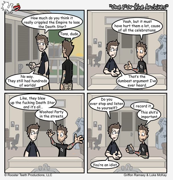 RoosterTeethComics.com is an archive of the series of webcomics about the staff at Rooster Teeth that ran from 2006 to 2011